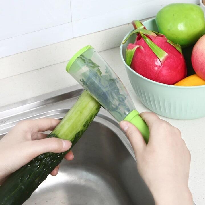 Mantén todo ordenado: está equipado con un recipiente único en el que se recoge los residuos de corte al cortar y pelar.