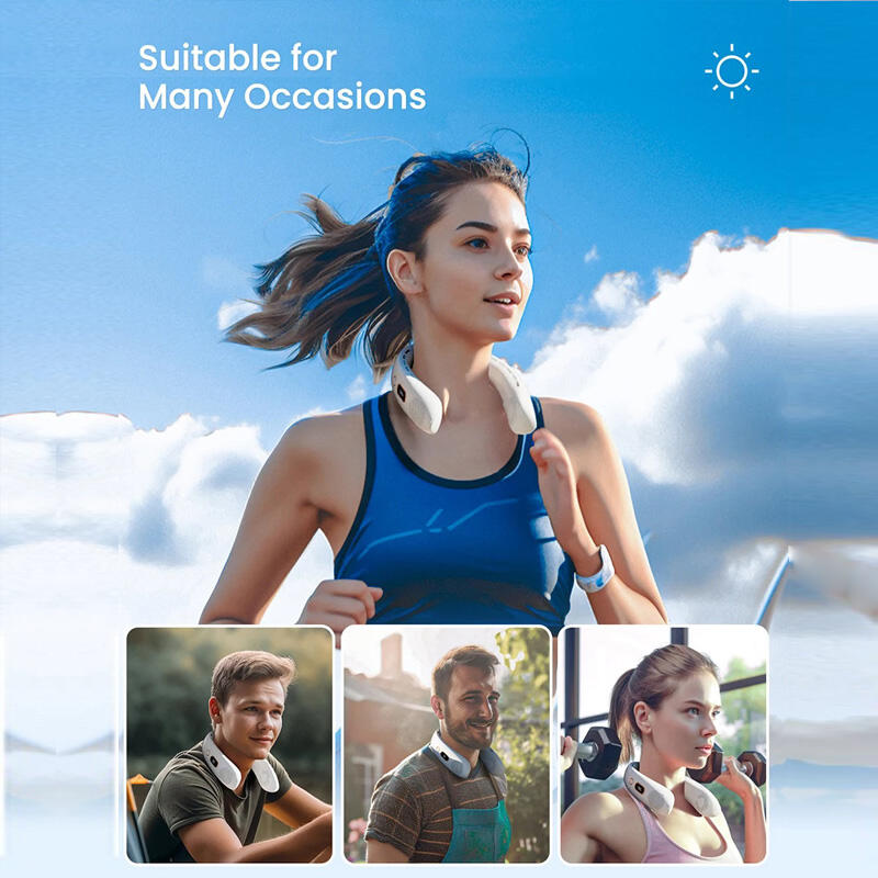 ✅ Diseño ergonómico tipo auriculares: Se ajusta cómodamente al cuello, dejando tus manos libres mientras te mantiene fresco.